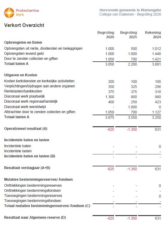 diaconie in het verslagjaar. De kolom rekening geeft inzicht in de